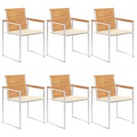 Havestole 6 stk. med hynder massivt teaktræ