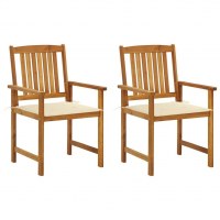 Disse havestole er fremstillet af massivt akacietræ, hvilket gør dem robuste og stabile. Hynderne tilføjer ekstra komfort. Hver hynde har to sæt snore, så de kan fastgøres til stolene.