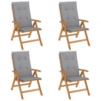 Positionsstole med hynder 4 stk. massivt teaktræ