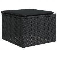 Haveskammel med hynde sort 55x55x37 cm polyrattan