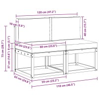 - 2 x Rygepude: 60 x 40 x 10 cm (LxBxH)
