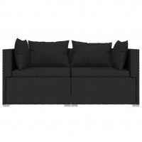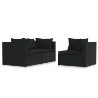 Loungesæt til haven 3 dele med hynder polyrattan sort