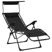 Havestolen har et robust stålstel og et textilenesæde og -ryglæn, der er vejrbestandigt og let at rengøre, så den holder i mange år. Den polstrede nakkestøtte er blød og komfortabel. Stolen har et baldakindesign, der giver kølig skygge. Da udendørs stolen er let i vægt, kan den nemt flyttes rundt, og den kan foldes sammen for at spare plads, når den ikke er i brug.