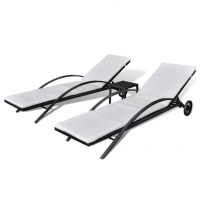 Liggestolssættet er let at rengøre, slidstærkt og velegnet til daglig brug, takket være det vejrbestandige og vandtætte PE-rattan. Liggestolene og bordet har et stærkt, pulverlakeret stålstel, som gør dem meget stabile og robuste. Ryglænene kan justeres til den mest behagelige position. De tykke, løse hynder øger sidde- og liggekomforten. Hyndebetrækkene kan let tages af og vaskes. Liggestolene kan let flyttes rundt, takket være deres hjul, og det robuste lille bord er ideelt til at holde dine drinks, telefon, en bog eller andre småting indenfor rækkevidde.