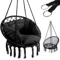 Hængekøjestol storkerede med ryglæn 80 cm – sort inkl. puder