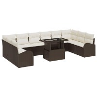 Havesofa sættet med puder i polyrattan er et eksklusivt supplement til ethvert udendørs rum, designet med moderne enkelhed og funktionalitet. Dette sæt har en problemfri vævet tekstur, der smelter sammen med naturen, og giver en moderne og afslappende atmosfære, der er velegnet til forårs- og sommerforsamlinger. Forestil dig dette fortryllende sæt på din havepatio, hvor dens gennemsigtige gladoverflade elegant reflekterer omgivende belysning, og skaber en fredelig atmosfære perfekt til både afslapning og underholdning af gæster.