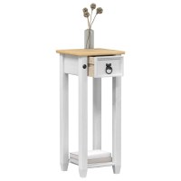 Denne smukke planteholder blander rustik charme med moderne funktionalitet og fungerer som et alsidigt møbel i ethvert rum. Den er lavet af massivt fyrretræ, som har et flot træmassemønster og en mat finish, der fremhæver dens robuste og attraktive look. Den er perfekt til både stuer og gange, da den skaber et unikt fokuspunkt i rummet.
