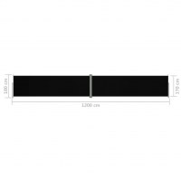 Sammenrullelig sidemarkise 180x1200 cm sort