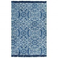 Kilim-tæppe med mønster bomuld 120 x 180 cm blå