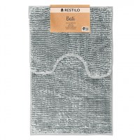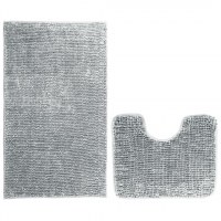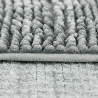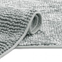 Måtterne er udført i 100 % polyester med en arealvægt på 1 200 g/m², hvilket giver en blød og fyldig overflade. Farven er grå med et nutidigt motiv, som skaber ro og sammenhæng på badeværelset. Sættet er dobbeltsidet og udformet i klassisk, rektangulær form.