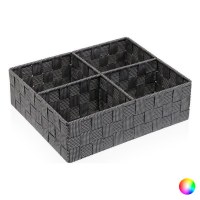 Hold styr på dine skønhedsprodukter og småting med denne praktiske kasse med rum fra Versa. Den rektangulære opbevaringskasse i gråt tekstil har fire adskilte rum, så du nemt kan sortere pensler, makeup, hårspænder eller andre badeværelsesting. Den diskrete farve og det flettede look passer ind i de fleste hjem og giver et roligt, organiseret udtryk.