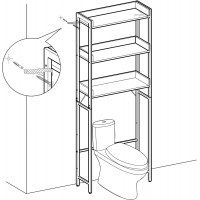 Nederste hylde er placeret 91 cm over gulvet, så stativet passer ikke bare over de fleste toiletter, men også over vaskemaskiner op til 60 cm i bredden. Perfekt til at have vaskepulver og skyllemiddel samlet ét sted. Den robuste konstruktion i træmateriale og stål giver en **stabil** løsning, og den medfølgende **væltesikring** gør det nemt at fastgøre reolen til væggen.