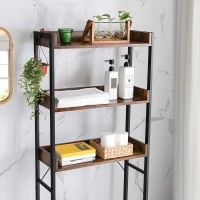 Udnyt den ubrugte plads over toilettet og skab orden i badeværelset. Denne **toilethylde med 3 åbne hylder** kombinerer varm vintage brun trælook med en sort stålramme for et indbydende, industrielt udtryk. De forhøjede kanter holder dine ting sikkert på plads – fra toiletartikler og håndklæder til planter og duftlys – så alt ser ryddeligt ud og er lige ved hånden.