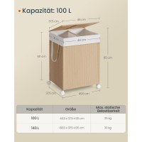 Hold styr på hele familiens tøj med denne rummelige vasketøjssorterer på 100 l. De to separate rum gør det let at sortere efter farve eller type, mens det elegante rattanlook passer flot ind i både bryggers og badeværelse. Låget skjuler indholdet for et pænt udtryk og giver ekstra privatliv.
