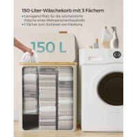 Hold styr på hele familiens tøj med denne rummelige vasketøjskurv på 150 l. De 3 separate rum gør det nemt at sortere farver, hvidt og finvask, så din vaskehverdag glider lettere. Låget skjuler rodet og beskytter privatlivet, mens det stilrene cremehvide design passer smukt ind i vaskerum og badeværelse.