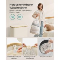 De aftagelige liners i mesh fastgøres med velcro og kan trækkes ud ved hjælp af snørelukningen, som også fungerer som håndtag. Mesh-designet kan bruges som vaskepose, når du vil vaske sorteret direkte i maskinen. Bambushåndtagene sikrer et behageligt greb, og den stabile konstruktion med glasfiberrør står fast i daglig brug. Når kurven ikke er i brug, kan den foldes fladt sammen for kompakt opbevaring.
