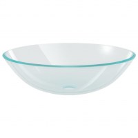 Håndvask til badeværelse m. hane og bundventil hærdet glas klar