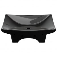 Keramisk rektangulær håndvask m. overløb & hul til hane sort