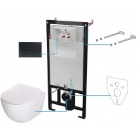 Sættet omfatter en indbygningscisterne i robust stålramme med frontbetjent trykknap, en væghængt toiletskål med sæde samt nødvendige monteringsdele, så du kan få et rent og minimalistisk udtryk på badeværelset. Den sorte trykknap giver et elegant, nutidigt præg, der passer i de fleste indretninger. Med en skjult cisterne får du mere gulvplads og lettere rengøring omkring toilettet.