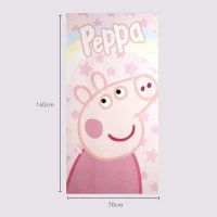 Gør strand- og svømmehalsturen ekstra sjov med dette lyserøde Peppa Pig strandhåndklæde. Håndklædet er i mikrofiber og har et stort motiv af Peppa på en baggrund med stjerner - perfekt til små fans, der elsker farver og hyggelige figurer. Den rummelige størrelse på 70 × 140 cm gør det ideelt til at tørre sig hurtigt og putte sig varmt efter badet.