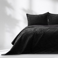 Sengetæppe – AmeliaHome Laila 220×240 cm, sort fløjl, glamour