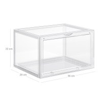 Den indvendige størrelse på 33,5 × 25,5 × 19 cm passer til sko op til UK størrelse 11. Både high‑top sneakers, hæle og korte støvler finder plads her. Leveres usamlet med tydelige instruktioner for enkel samling.