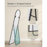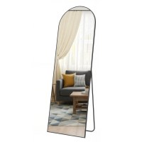 Spejlet er fremstillet af hærdet glas med sikkerhedsfilm, som mindsker risikoen for splinter ved brud. Den robuste ramme i aluminiumlegering er skabt til at modstå rust og bevare sin glans, samtidig med at den er solid nok til at modvirke revner. Den bløde bue og den dybe Ink Black-farve giver spejlet et tidløst look, der også fungerer som dekorativt element i hjemmet.