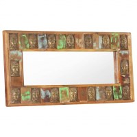 Dette spejl med unikke buddha-billeder er ideelt som dekoration i din gang. Spejlet er lavet af massivt genbrugstræ, der stammer fra tværbjælker, gulve og støttebjælker fra gamle, nedrevne bygninger. Det kan derfor bestå af forskellige trætyper såsom fyrretræ, teak, bøg, eg, ceder, mangotræ, akacietræ mv. Dette betyder, at genbrugstræ bevarer karakteristikkerne af disse forskellige trætyper. Genbrugstræ er allerede ældet, forvitret og tørret, så det skrumper eller bukker ikke. Dette spejl i træ er 100 % håndlavet, og de smukke åremønstre gør hvert møbel unikt.