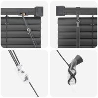- Nødvendige komponenter Du får en drejestang til nem justering, en sikkerhedsklip til børnene og et sæt monteringsudstyr med i købet. Det gør persiennen praktisk og nem at installere, samtidig med at du kan styre lyset og holde sikkerheden i orden.