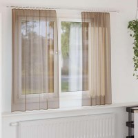Voile-gardiner med stanglommer 2 stk lysebrun