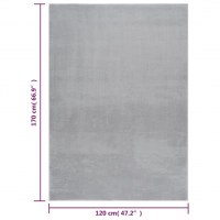 Gulvtæppe 120x170 cm blødt plys skridsikkert vaskbart lysegrå