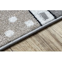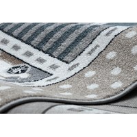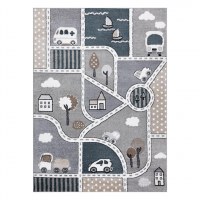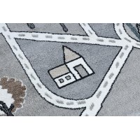 Skab en hyggelig og legende base på børneværelset med Hakano Beo Strade. Tæppet måler 80 × 150 cm og har en blød bunkehøjde på 8 mm, der føles behagelig under fødderne. Det er prydet med charmerende vejbaner, huse, træer, skyer, biler og både i rolige nuancer af grå, beige, hvid og brun – perfekt til små bil- og by-entusiaster, der elsker at køre legetøjsbiler rundt på vejene.