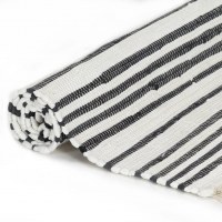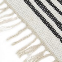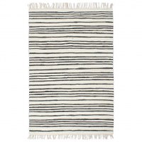 Tæppet er lavet af 100% bomuld, hvilket gør det både naturligt og blødt at røre ved. Dets simple, dog tilfældigt stribet mønster gør tæppet til en fantastisk måde at udsmykke gulvområder, sofaer, bænke m.m. på. Tæppet vil sætte et moderne og charmerende præg på enhver indretning. Bemærk venligst at hvert tæppe er unikt; variationer i farve og design kan forekomme, da tæppet er håndlavet; udvælgelse til levering er tilfældig.
