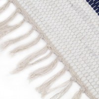 Tæppet er lavet af 100 % bomuld, hvilket gør det både naturligt og blødt at røre ved. Det enkle, men smukke stribemønster gør tæppet til en fantastisk måde at udsmykke gulvområder, sofaer, bænke m.m. på. Tæppet vil sætte et moderne og charmerende præg på enhver indretning. Bemærk venligst, at hvert tæppe er unikt; variationer i farve og design kan forekomme, da tæppet er håndlavet; udvælgelse til levering er tilfældig.
