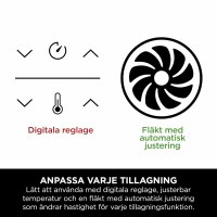 - Præcis styring med indbygget display, timer og temperaturregulering