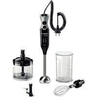 Stavblenderen leveres med piskeris og rustfrit stålkniv, så du kan skifte mellem piskning og purering. Den kan knuse is, og den aftagelige blenderfod og kniven kan nemt tages af for rengøring. En medfølgende hakker gør det hurtigt at snitte nødder, urter eller grøntsager, mens målebægeret giver præcis opmåling, når du blander dressinger og smoothies.