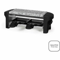 Den øverste kogeoverflade er lavet af sten, som fordeler varmen jævnt og giver en naturlig tilberedning af smeltet ost, kød, fisk og grøntsager. Med 350 W får du effektiv opvarmning og kontrol over temperaturen, så maden tilberedes behageligt ved bordet. Designet i sort og grå passer ind i de fleste hjem og er nemt at have stående.