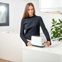Med en effekt på 820 W får du en effektiv risteoplevelse. Modellen har to sprækker og et intuitivt betjeningshjul på siden, så du let kan vælge den ristningsgrad, du foretrækker. Der medfølger brugervejledning, så du kommer hurtigt i gang.