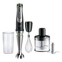 Med variabel hastighed styret via trykknap får du præcis kontrol – fra cremede supper til friske smoothies. Sættet inkluderer hakkerpåsætning (500 ml) til grønt og nødder, piskeris til flødeskum og dej samt isknusningsblade til kolde drikke. Bægerglas på 600 ml følger med til hurtige blandinger. Aftagelige dele er maskinopvaskbare for nem rengøring. Det elegante design i premium sort og børstet rustfrit stål passer flot ind i moderne køkkener.