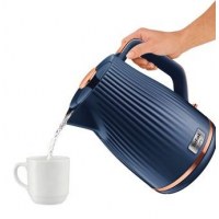 Tefal Loft KO251430 er en stilfuld elkedel i blå med elegante detaljer, der gør sig godt på køkkenbordet. Den rummer 1,7 l, så du let kan lave te, kaffe eller hurtige varme retter til hele familien. Med 2.400 W får du hurtigt kogende vand, mens den 360° drejefod og ledningsfri kande gør det let at løfte, hælde og sætte tilbage fra alle vinkler.