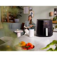 Airfryeren understøtter Wi‑Fi og kan styres via smartphone samt fungerer med Alexa. Variabel temperatur og klar‑til‑mad indikator hjælper dig i mål hver gang. De aftagelige dele er maskinopvaskbare, så oprydningen er hurtigt klaret. Med tænd/sluk-knap, varmholdningsfunktion og flere tilberedningsfunktioner får du en alsidig hjælper til køkkenet.