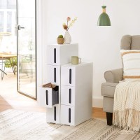 Få mere ud af smalle mellemrum med dette smalle opbevaringsmøbel fra SONGMICS. Det kompakte mål på 45 × 17 × 84 cm gør det ideelt mellem skabe, ved siden af vaskemaskinen eller ved køkkenbordet. De dybe skuffer giver god plads til alt fra rengøringsmidler og krydderier til badeværelsesartikler, så du hurtigt får styr på hverdagen.