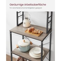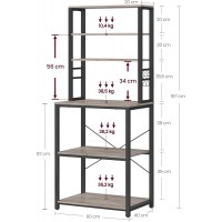 Denne køkkenreol fra VASAGLE giver dig et ryddeligt overblik og et stilrent udtryk i køkkenet. Med 6 hylder og 6 S‑kroge får du plads til alt fra mikrobølgeovn og kaffemaskine til tallerkener, glas og køkkenredskaber. Reolen kan også danne rammen om en hyggelig kaffe- eller serveringsstation – en praktisk og dekorativ tilføjelse til små køkkener.