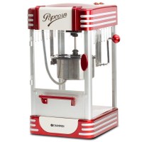 Maskinen kombinerer et klassisk, rød-hvidt design med gennemsigtige sider, der gør det let at følge popping-processen. Den indbyggede gryde og håndtag gør serveringen enkel, mens effekten på 360 W giver en effektiv tilberedning. Perfekt som stilfuldt køkkentilbehør, der også er en dekorativ detalje på bordet.