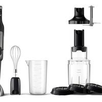 Medfølgende tilbehør gør denne stavblender til et komplet køkkenredskab: håndblenderfod, piskeris, hakker (0,7 l), spiralmager med tre indstik (spaghetti, linguini, bånd), samt bægerglas. Det hele er designet til nem udskiftning, så du kan skifte fra at piske flødeskum til at lave grøntsagsspaghetti på få sekunder. Tilbehøret tåler opvaskemaskine for enkel rengøring.