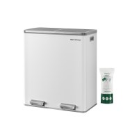 Selvom ydersiden er robust stål, lukker lågene blødt takket være soft close, så du undgår høje smæld og holder lugte inde. De to inderspande i plastik kan løftes ud via metalhåndtag, hvilket gør tømning og rengøring nemt – perfekt hvis en pose går i stykker. Der medfølger 15 affaldsposer, så du kan komme i gang med det samme.