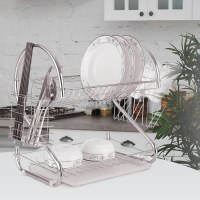 Opvaskestativ 38 cm Maestro – sølv, dobbelt med drypbakke