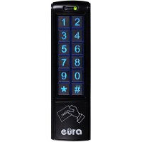 eura AC-30C7 er en kompakt, sort kodelås med numerisk tastatur. Den giver enkel adgangsstyring i hjemmet eller på kontoret og er et godt valg, når du ønsker at slippe for fysiske nøgler. De oplyste taster gør den nem at bruge i mørke, og det slanke, lodrette design passer diskret ved siden af døren.