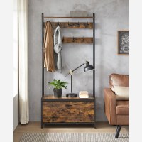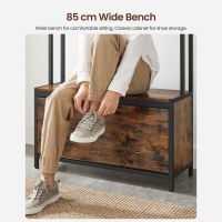 Skab ro i entréen med dette rummelige møbel i industrielt design. Her får du en praktisk løsning med 9 kroge til jakker og tasker, et lukket skoskab med klap, en 85 cm lang bænk samt en tophylde til småting. Perfekt til gang, soveværelse eller garderobe, hvor du vil hænge tøj, skjule sko og have et fast sted at sætte sig, når skoene skal af og på.