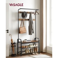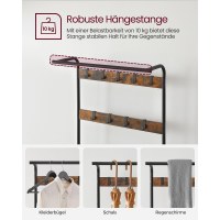 Hold gangen ryddelig med dette smarte 4‑i‑1 møbel fra VASAGLE. Kombinationen af tøjstativ, skobænk, skoreoler og flytbare kroge giver dig et samlet sted til hverdagens ting – fra jakker og tasker til sko og accessories. Den øverste bøjlestang udnytter højden optimalt, så du kan hænge tørklæder, paraplyer eller ekstra bøjler.